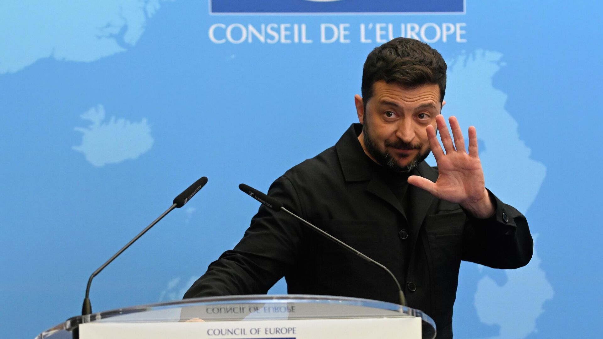 Владимир Зеленский на пресс-конференции в Совете Европы в Страсбурге, Франция. Архивное фотоДзен